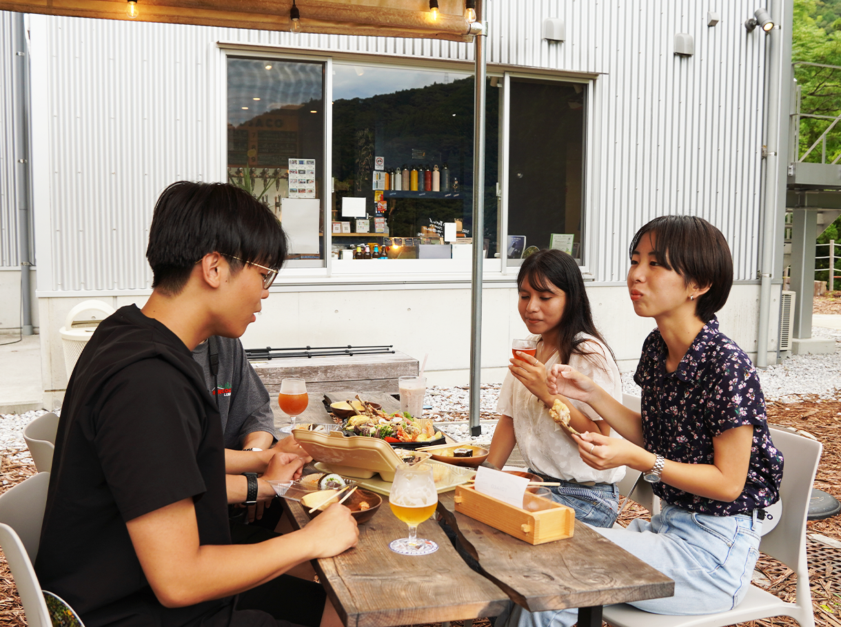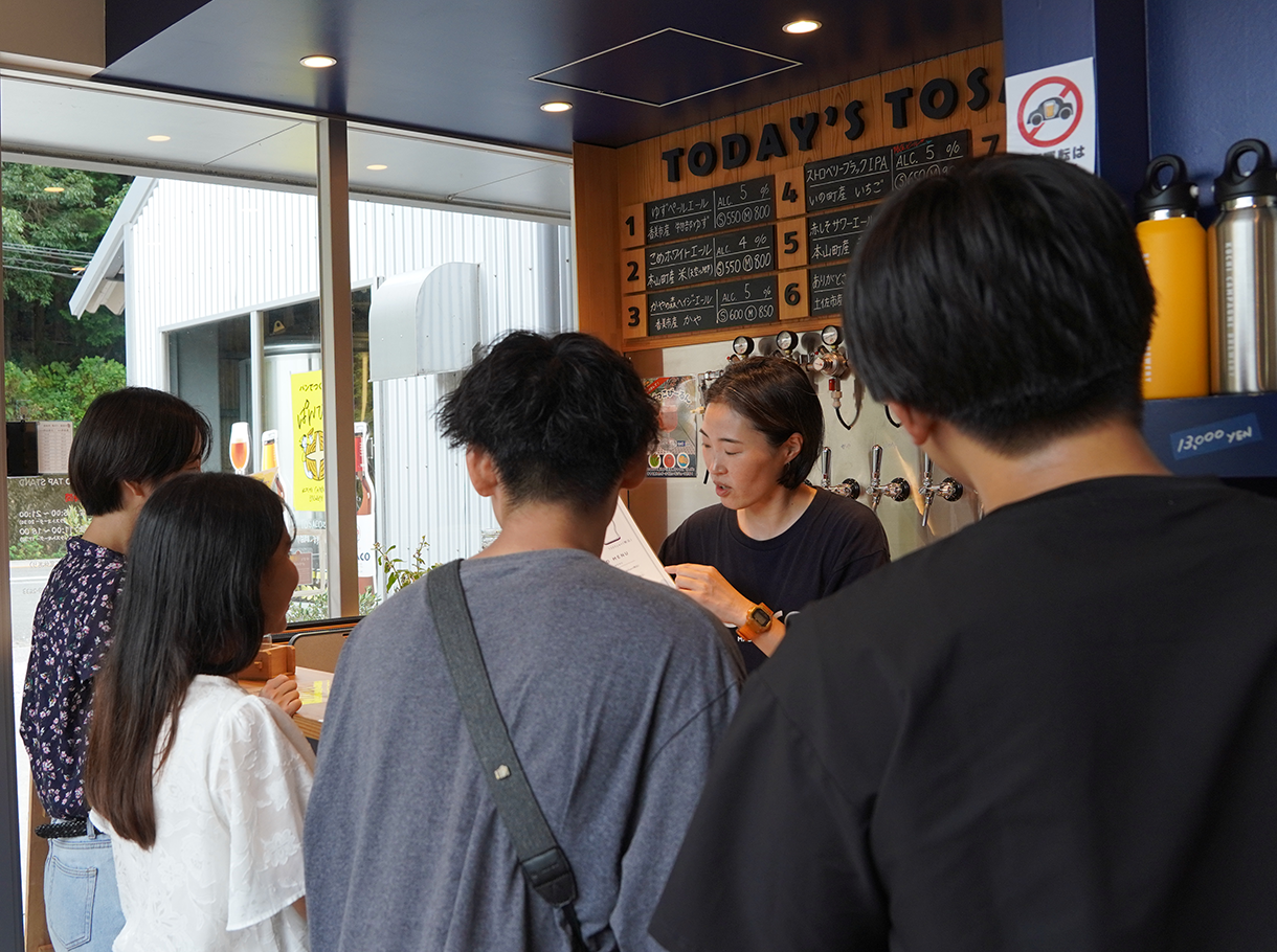 木の香りただようTAP STANDで、TOSACO自慢のクラフトビールをゆっくり味わうひととき。